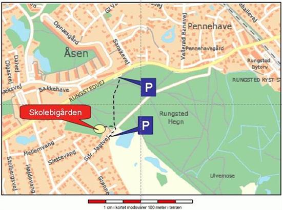 Skolebigården findes i Folehaven i Hørsholm tæt på enden af Sønder Jagtvej. Parkering er lettest på Sønder Jagtvej, og skolebigården ligger så ca. 100 til venstre inde i skoven. (https://maps.app.goo.gl/CNKNf9DQxVorY3Yu7)